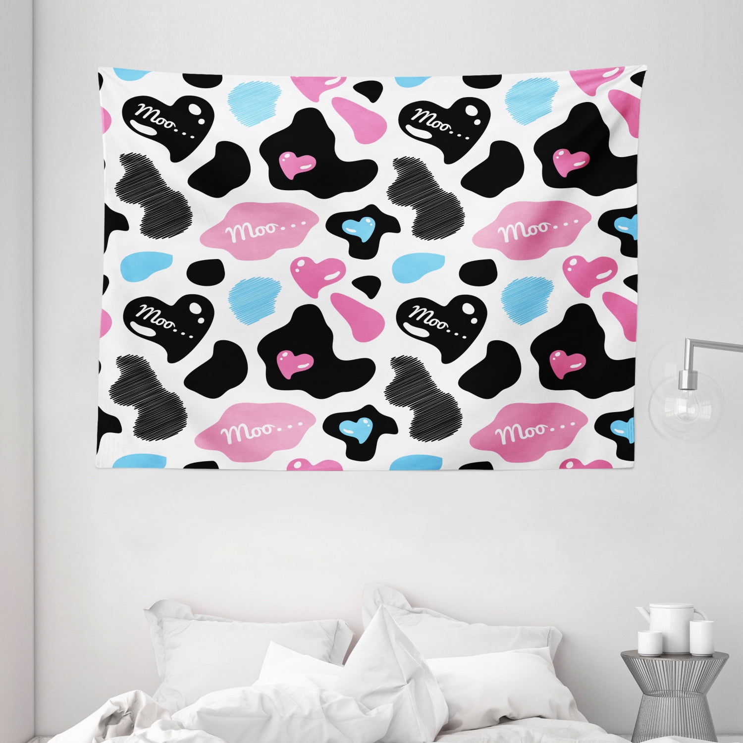 Cow Print Tapestry Lovely Cow Hide With Cute Hearts Moo Barnyard Love Abstract Design Wall Hanging For Bedroom Living Room Dorm Decor 80w X 60l Inches Pale Pink Black White By Ambesonne