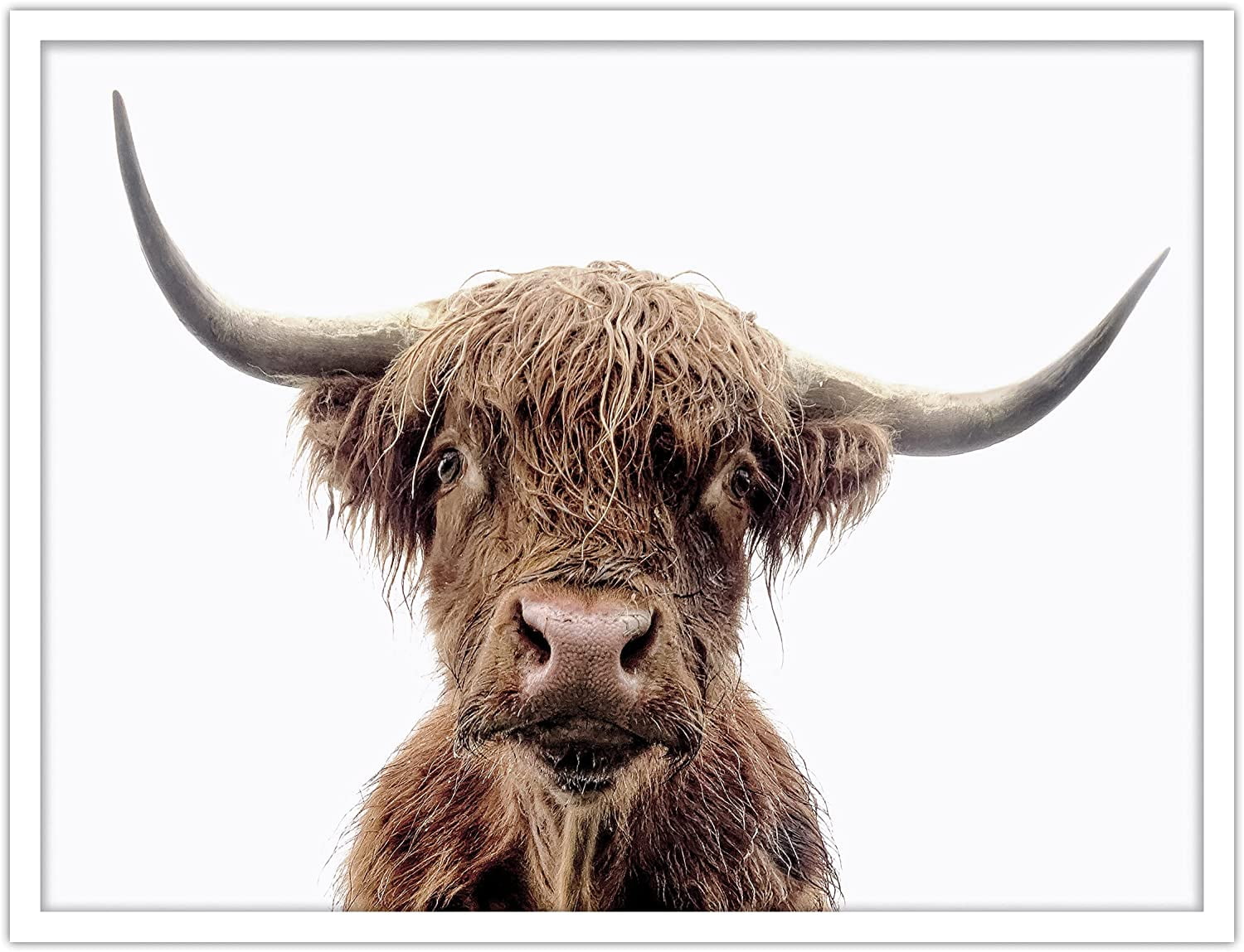 Pixonsign Framed Wall Art Print Thin Brown Highland Cow Portrait Animals Wilderness Photography Realism Farmhouse Country Multicolor Warm For Living Room Bedroom Office 12 X16 Black Walmart Com
